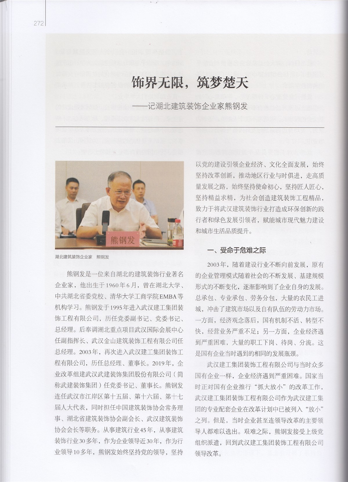 武建裝飾集團(tuán)董事長(zhǎng)熊鋼發(fā)榮登中國(guó)建筑裝飾四十年《大國(guó)裝飾·杰出人物》榜 。