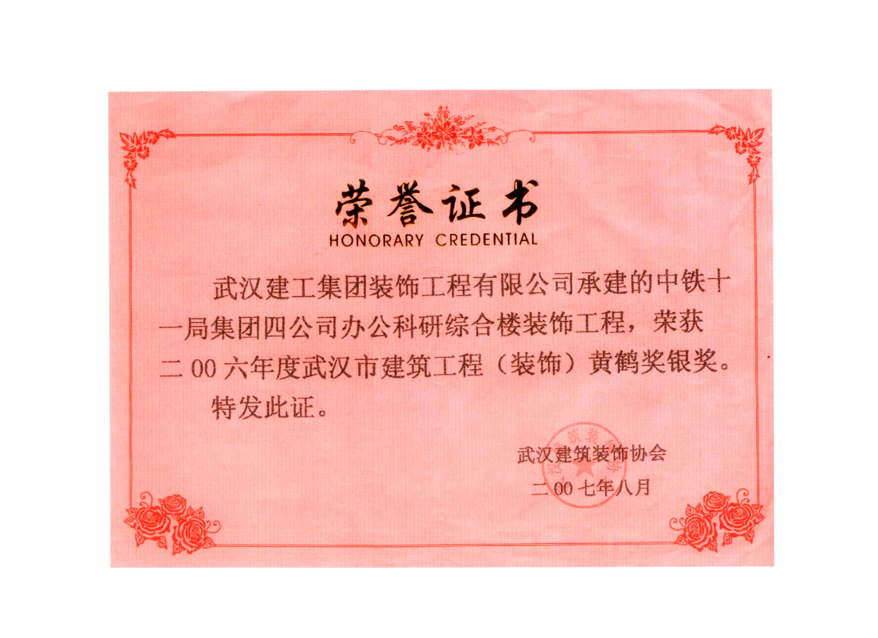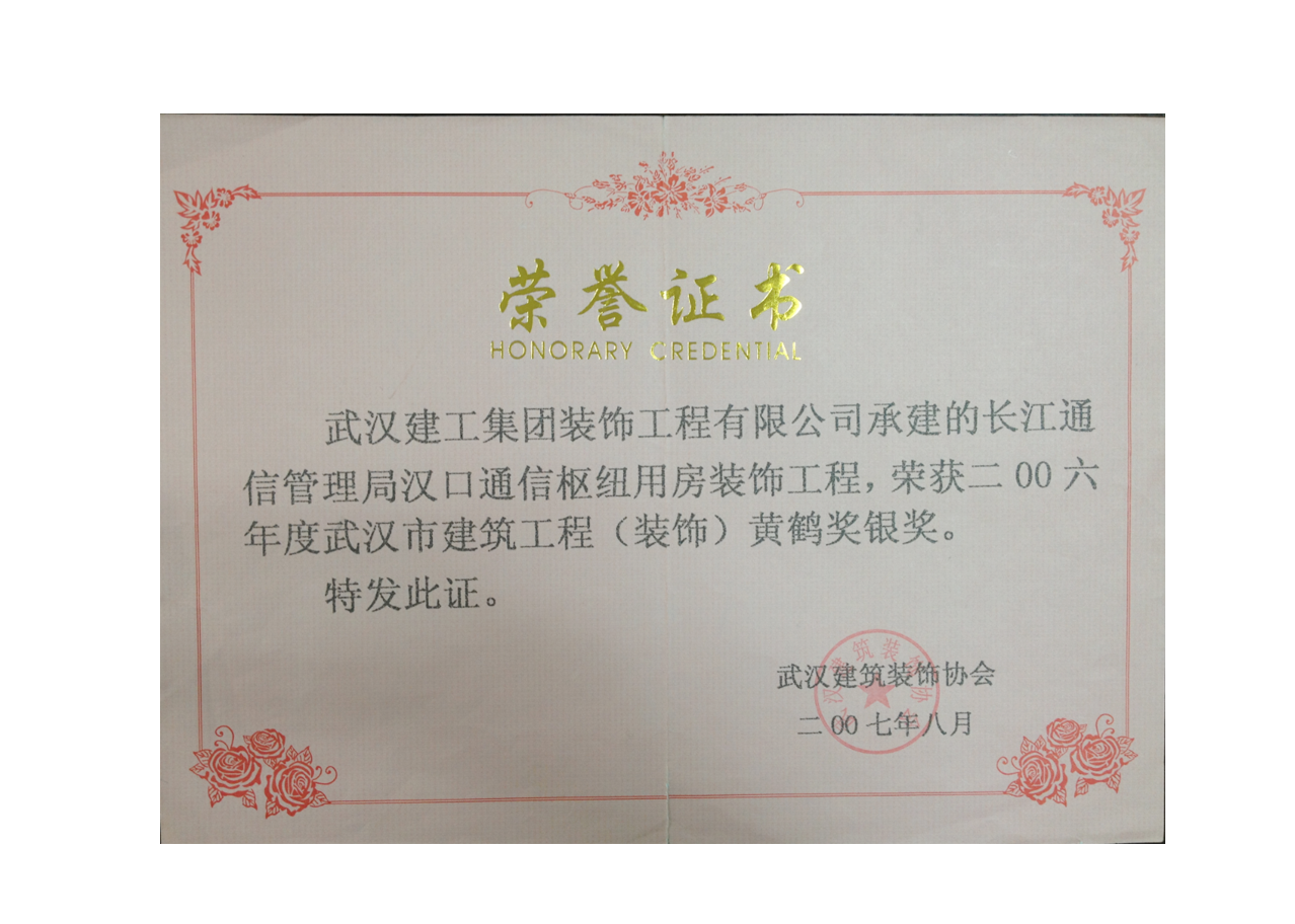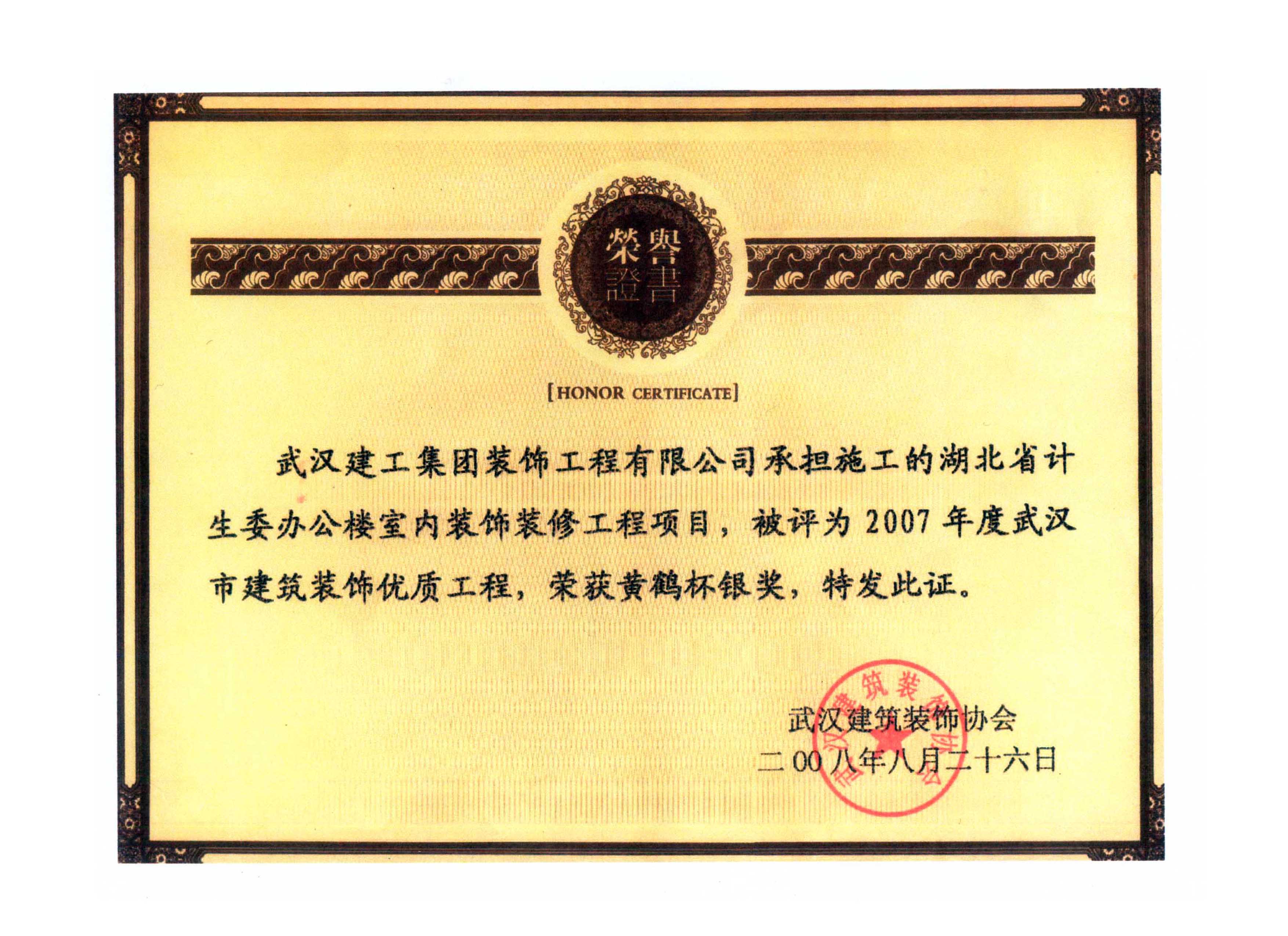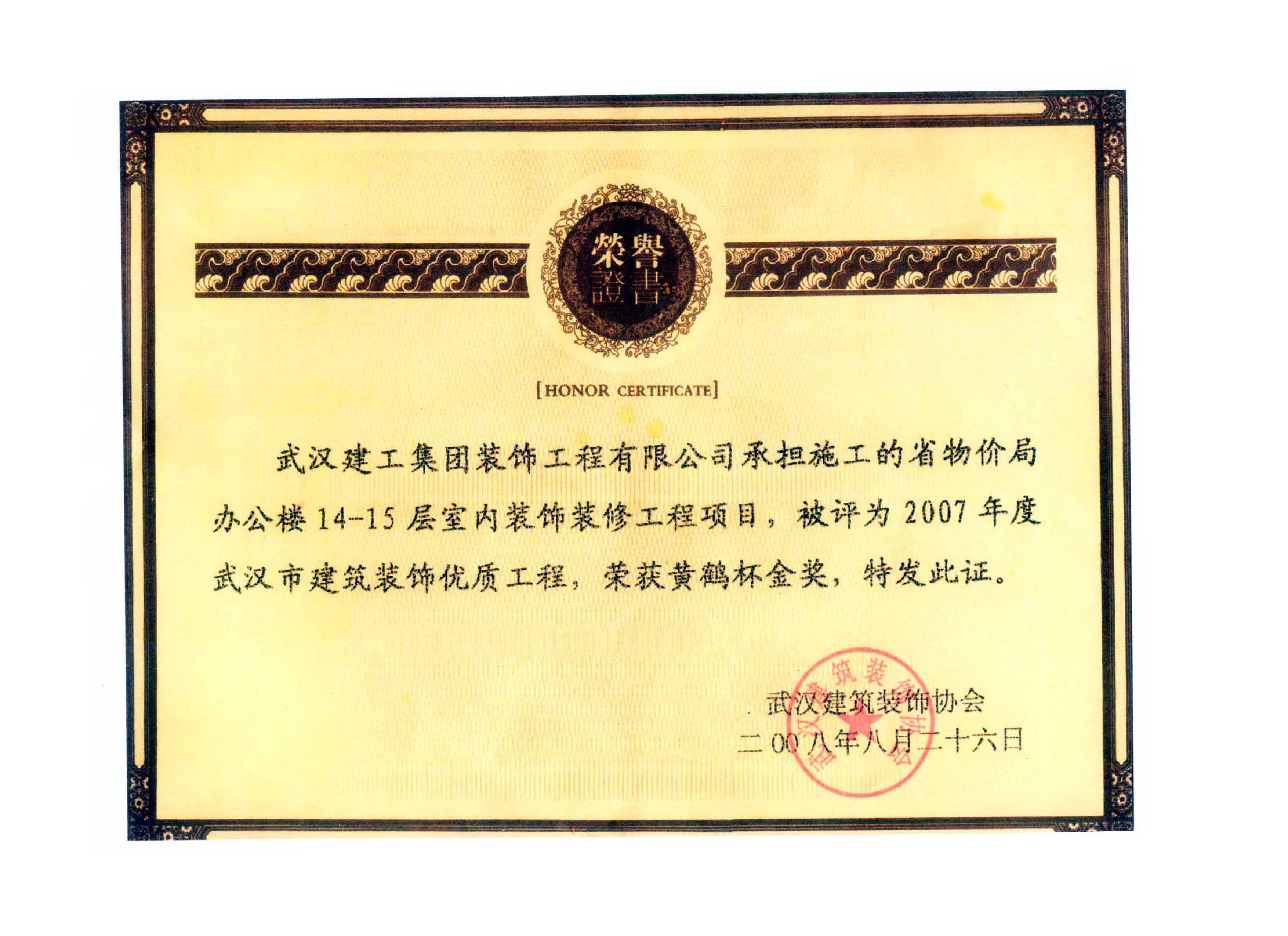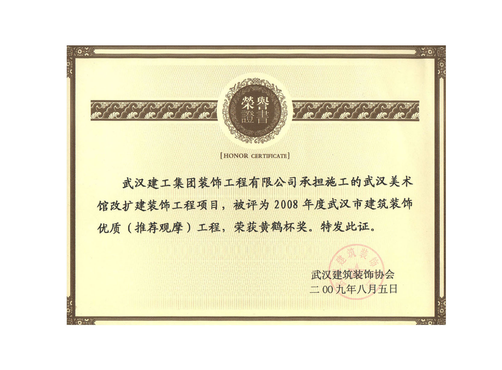武漢市建筑裝飾優(yōu)質(zhì)(黃鶴獎)工程