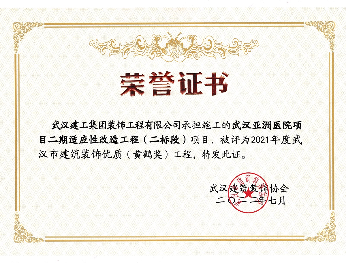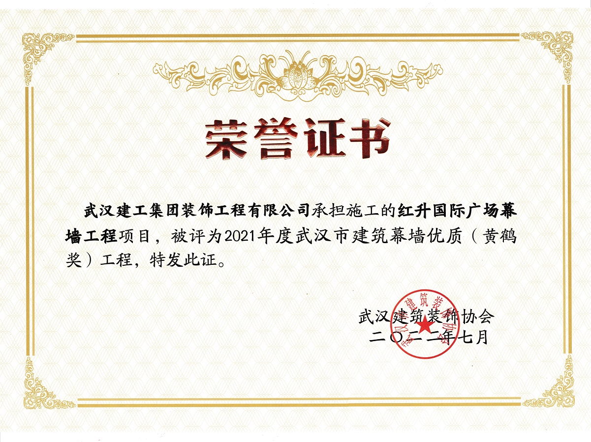 武漢市建筑裝飾優(yōu)質(zhì)(黃鶴獎(jiǎng))工程